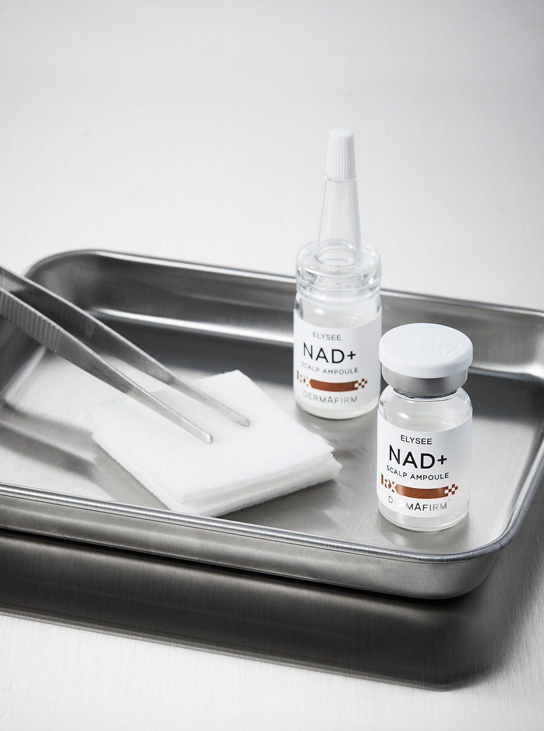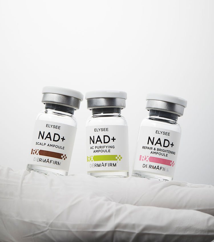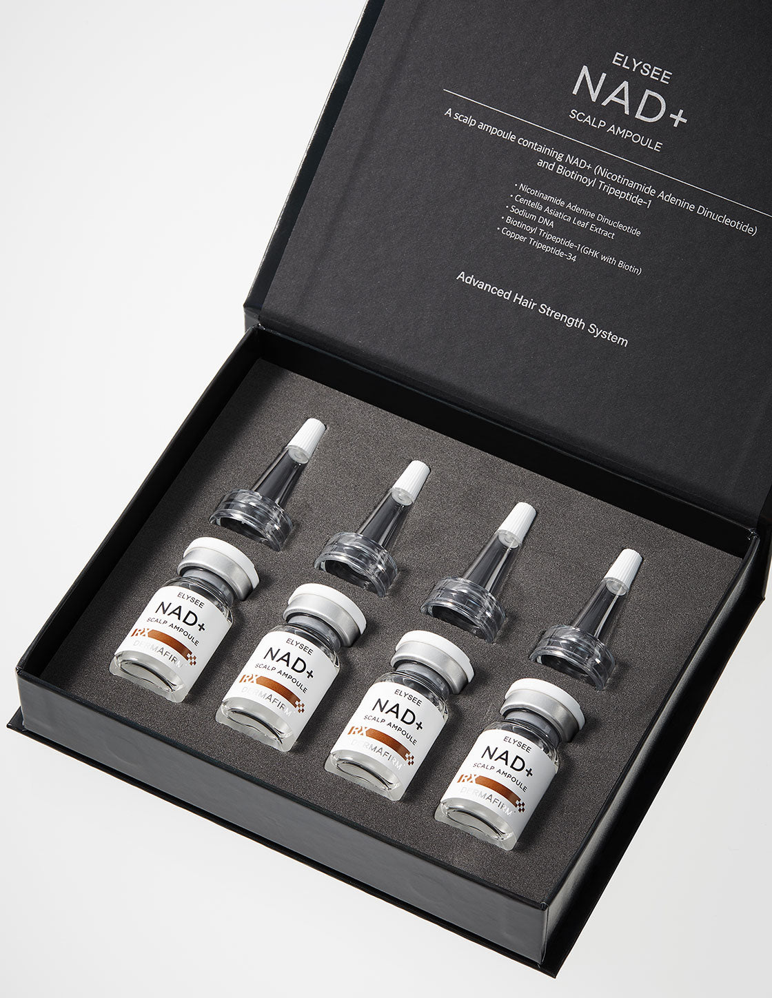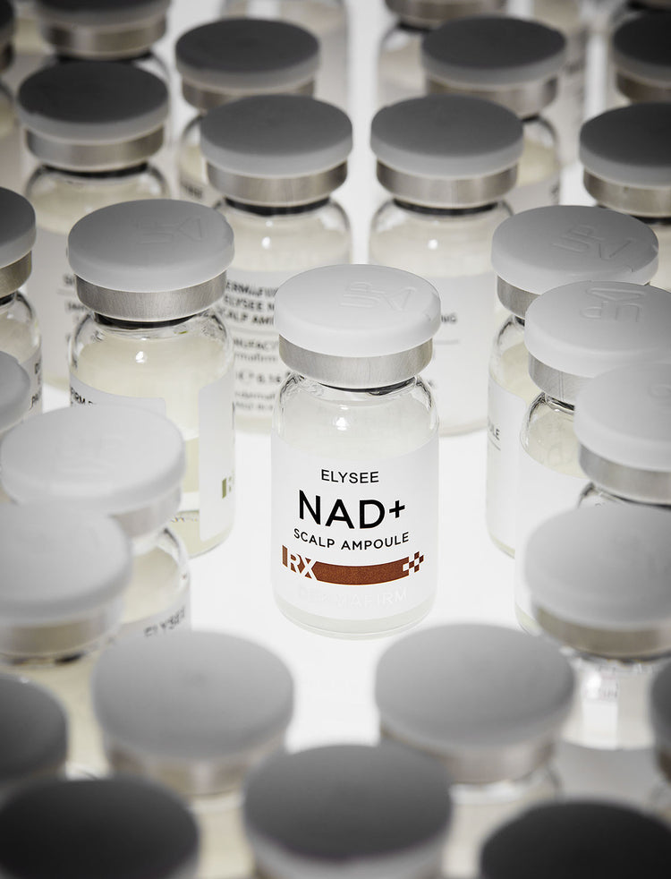 Specialized scalp care ampoule containing NAD⁺, CICA-EXOSOME, PDRN with Biotinoyl Tripeptide-1 and Copper Tripeptide-34 to support healthy hair growth.